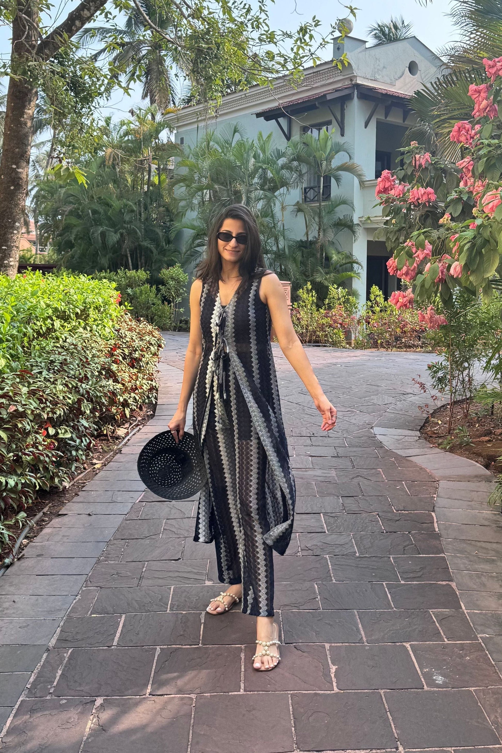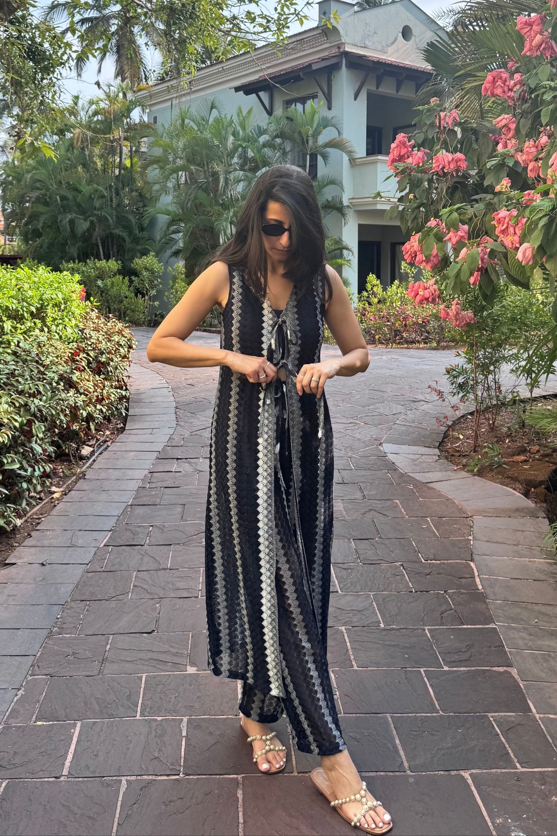 Details: Two piece set- Top is unlined, pants are high waisted, half lined and have a fully elasticated waist